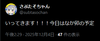 | … | 941無題Name名無し 25/12/04(木)19:36:33 IP:133.200.*(mesh.ad.jp)No.11050291+🦉 |
