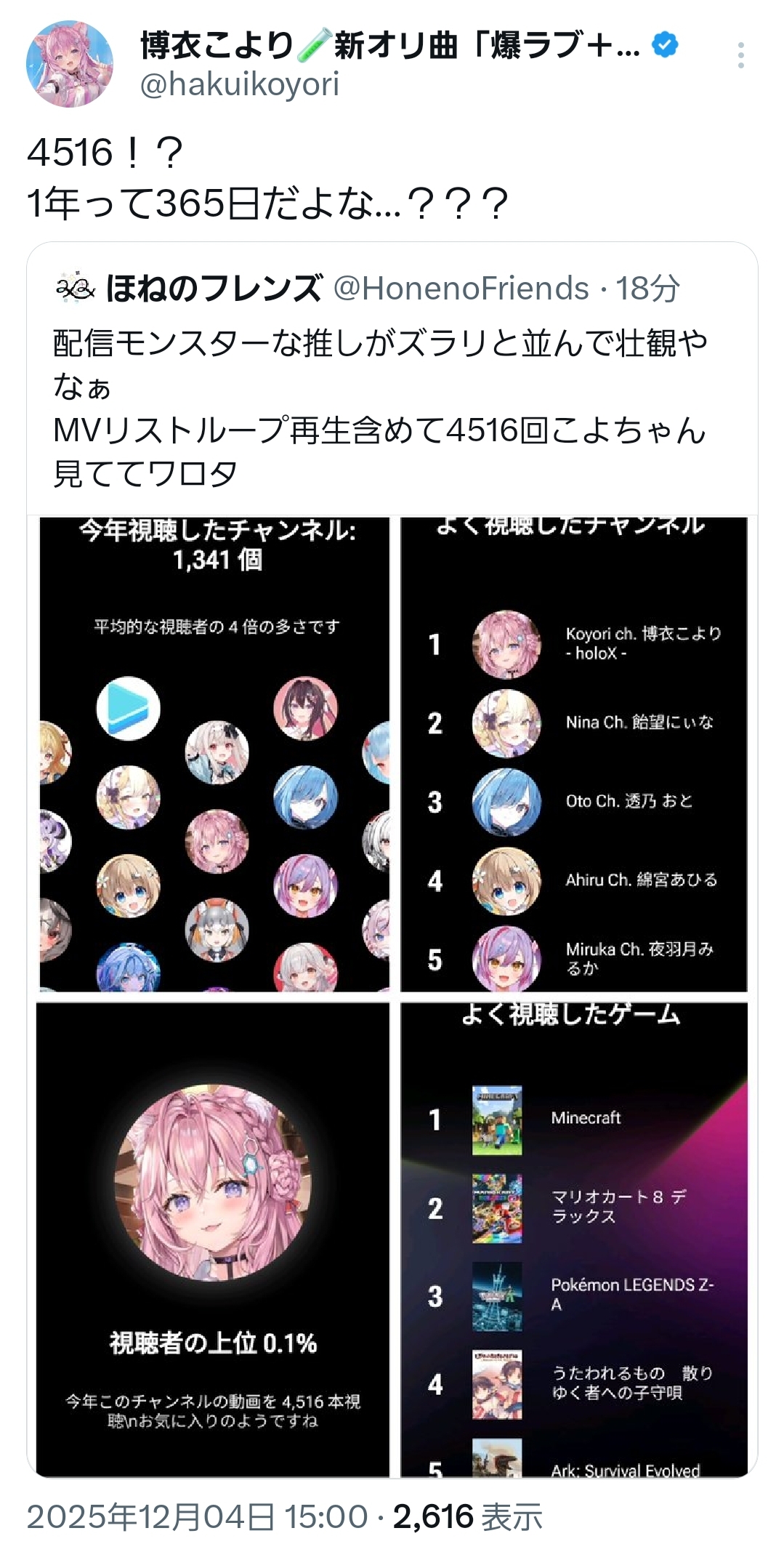 | … | 924無題Name名無し 25/12/04(木)19:35:31 IP:106.146.*(dion.ne.jp)No.11050274そうだねx1こよが死んだタイミングでこよりー!大丈夫かー!は笑う |