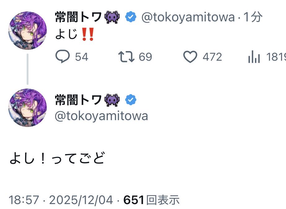 | … | 989無題Name名無し 25/12/04(木)19:42:34 IP:58.3.*(bbiq.jp)No.11050346+偽わため分かりやすいな… |