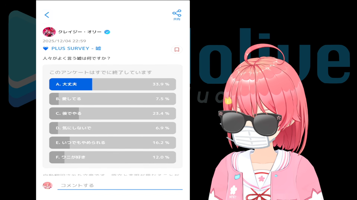| … | 16無題Name名無し 25/12/05(金)19:20:43 IP:119.169.*(home.ne.jp)No.11054974+謎のVtuberによるホロライブ公式HP調査配信 |