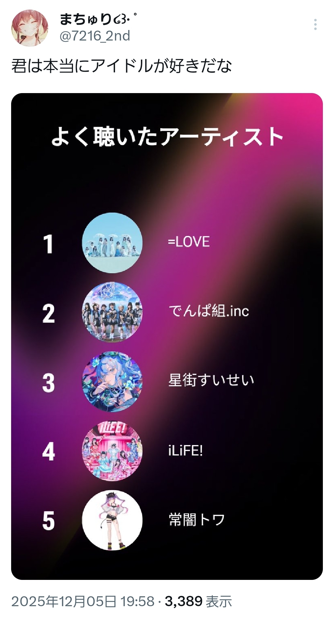 | … | 73無題Name名無し 25/12/05(金)19:22:59 IP:59.132.*(au-net.ne.jp)No.11055034+デバイスの筆頭はりりかなのか |