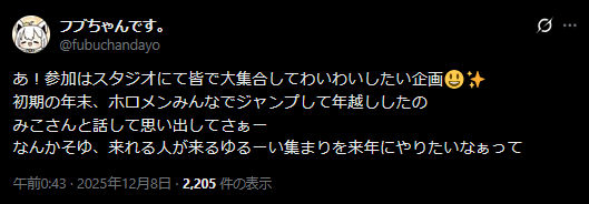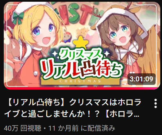 | … | 66無題Name名無し 25/12/08(月)00:24:17 IP:106.72.*(enabler.ne.jp)No.11076121そうだねx12>ホロメンの配信を見てるといつの間にか年末になってしまってる |