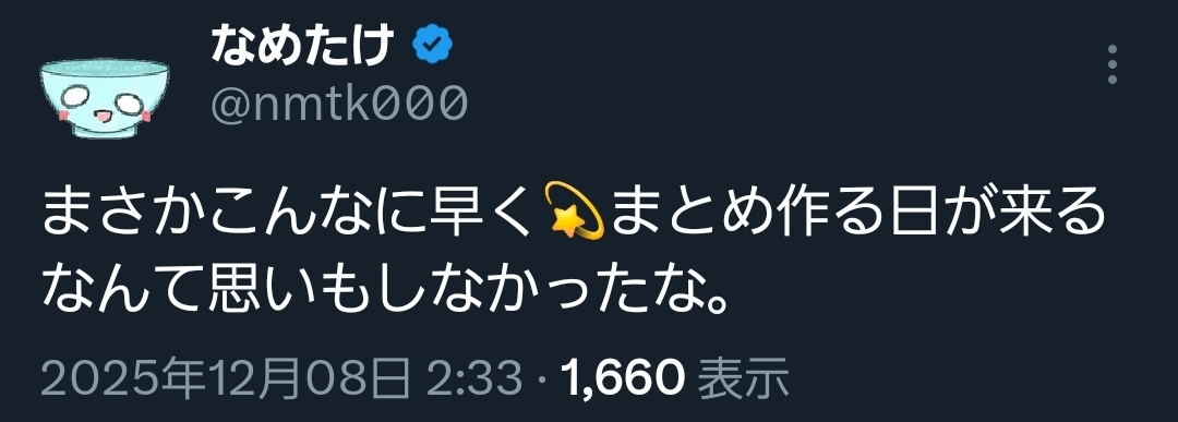 | … | 1無題Name名無し 25/12/07(日)23:46:24 IP:59.132.*(au-net.ne.jp)No.11076045そうだねx6 1765118784599.jpg-(400756 B) 立て乙明日 |