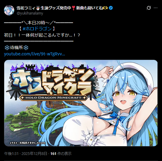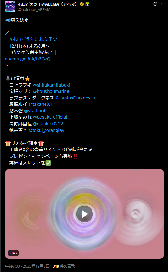 | … | 981無題Name名無し 25/12/08(月)19:16:41 IP:60.75.*(bbtec.net)No.11077263+>EXPOの方だから全体ライブとは違うぞ |