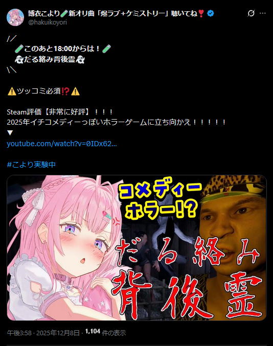 | … | 74無題Name名無し 25/12/08(月)00:38:48 IP:118.7.*(ocn.ne.jp)No.11076130そうだねx1ロボ子さんの歌い始めの温度差よ |