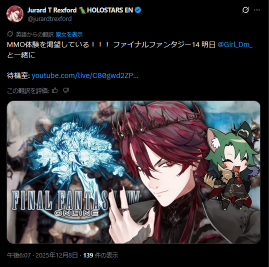 | … | 84無題Name名無し 25/12/08(月)00:47:05 IP:118.7.*(ocn.ne.jp)No.11076142そうだねx1>ロボ子さんのファンミ格ゲー好きな人が結構きてました |