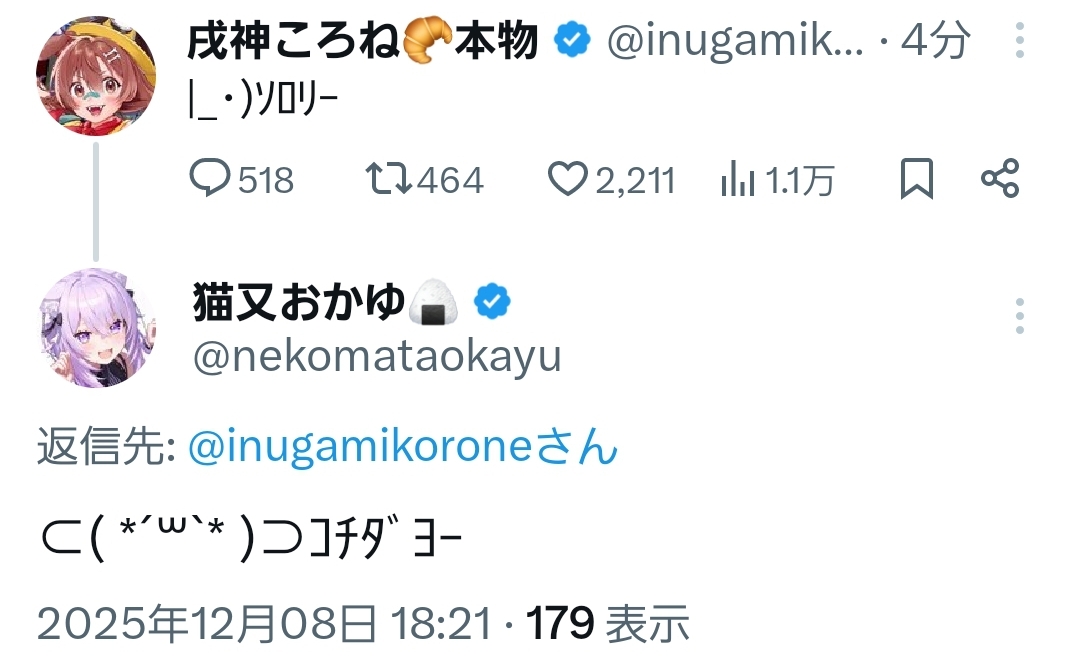 | … | 49無題Name名無し 25/12/08(月)00:14:19 IP:106.73.*(enabler.ne.jp)No.11076104そうだねx1>今日のミオしゃの逆凸でなんでポルカとネリッサの組み合わせなんだろうと思ったけどネリッサがぽのカバー出すからだったんだ |