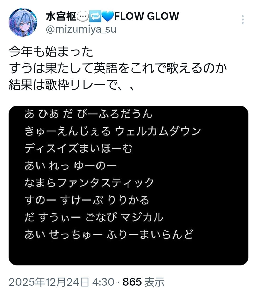 | … | 938無題Name名無し 25/12/24(水)08:14:01 IP:122.133.*(mesh.ad.jp)No.11176550+クリスマス歌枠でよく聞く曲だ |