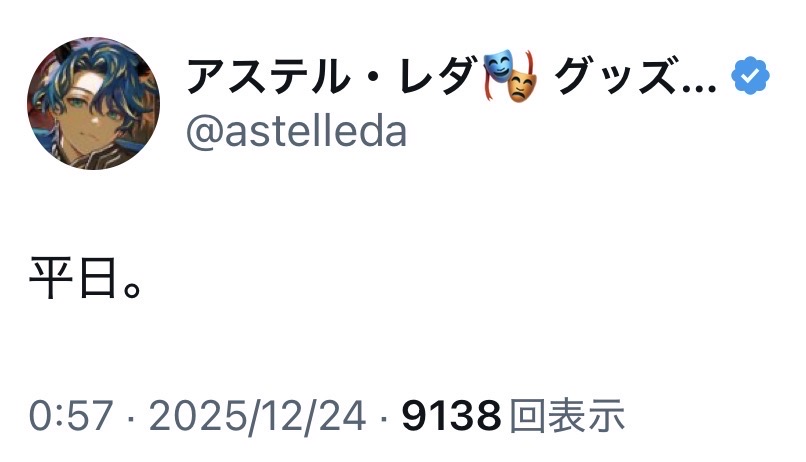 | … | 973無題Name名無し 25/12/24(水)10:16:40 IP:106.130.*(au-net.ne.jp)No.11176622+>今思ったけどイブもクリスマスもお祝い日なのに休日ではない平日とは…? |
