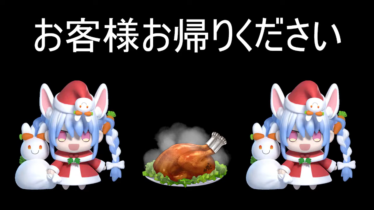 | … | 920無題Name名無し 25/12/24(水)20:00:18 IP:59.146.*(nuro.jp)No.11179773+【3D】リア凸来るまで帰れないクリスマスパーティ【ホロライブ/兎田ぺこら】#メリクリぺこパーティ |