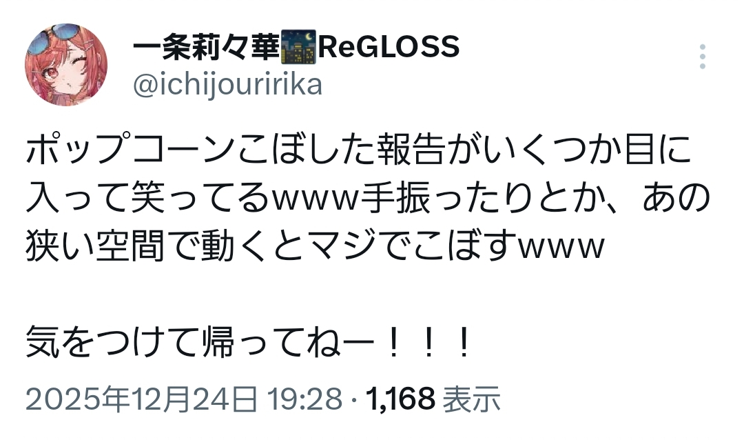 | … | 948無題Name名無し 25/12/24(水)20:01:47 IP:222.9.*(commufa.jp)No.11179801+始まるまで半信半疑だったけど歌ライブなのか⋯家族人質に取られた? |
