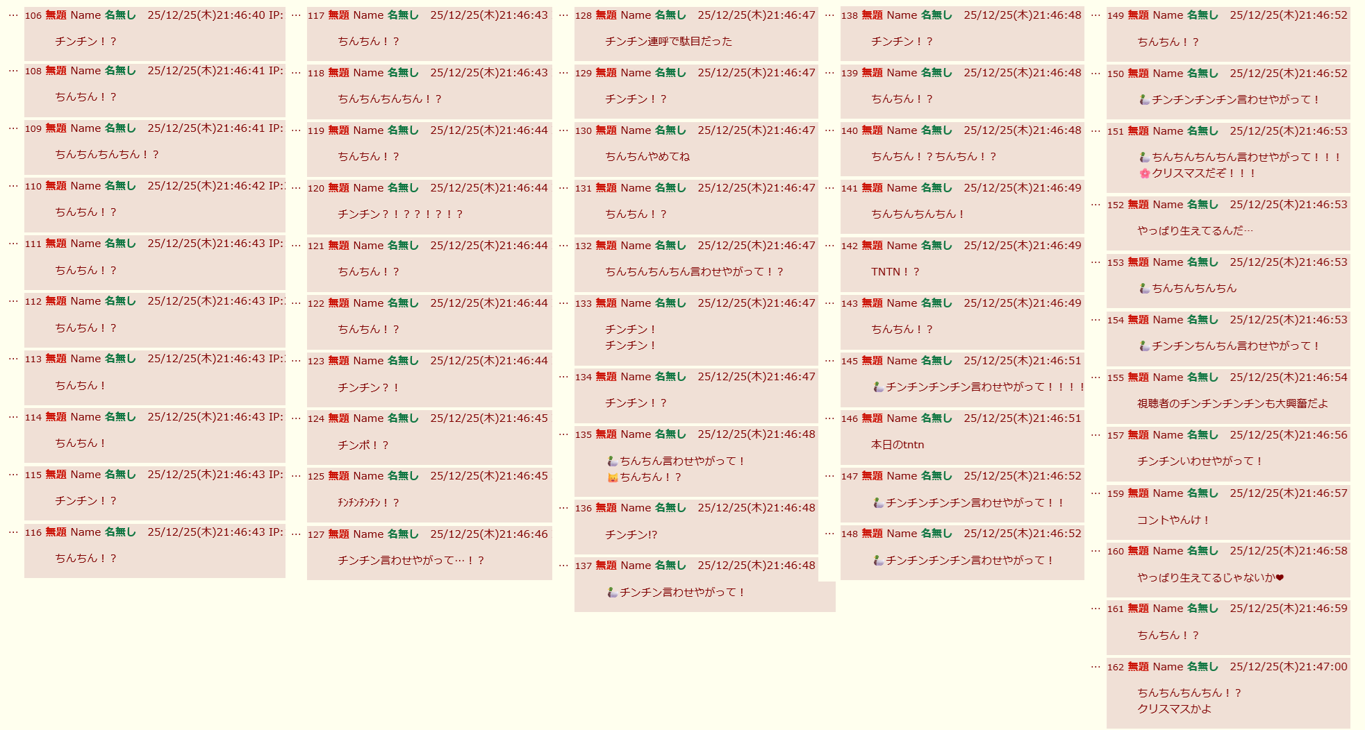 | … | 49無題Name名無し 25/12/25(木)22:11:10 IP:133.106.*(ipv4)No.11194317+35Pいた |
