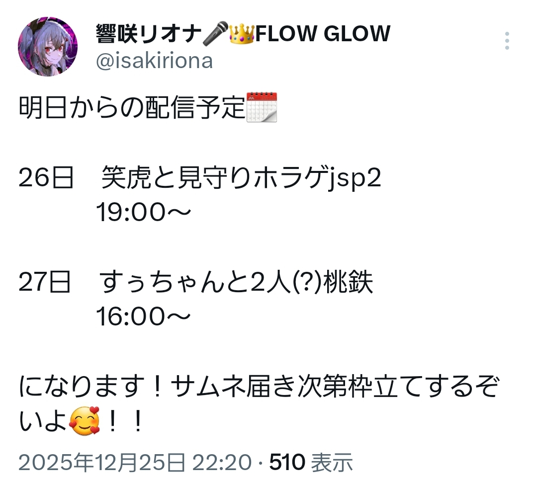 | … | 960無題Name名無し 25/12/25(木)22:43:21 IP:59.132.*(au-net.ne.jp)No.11195234+ホリケンかな? |