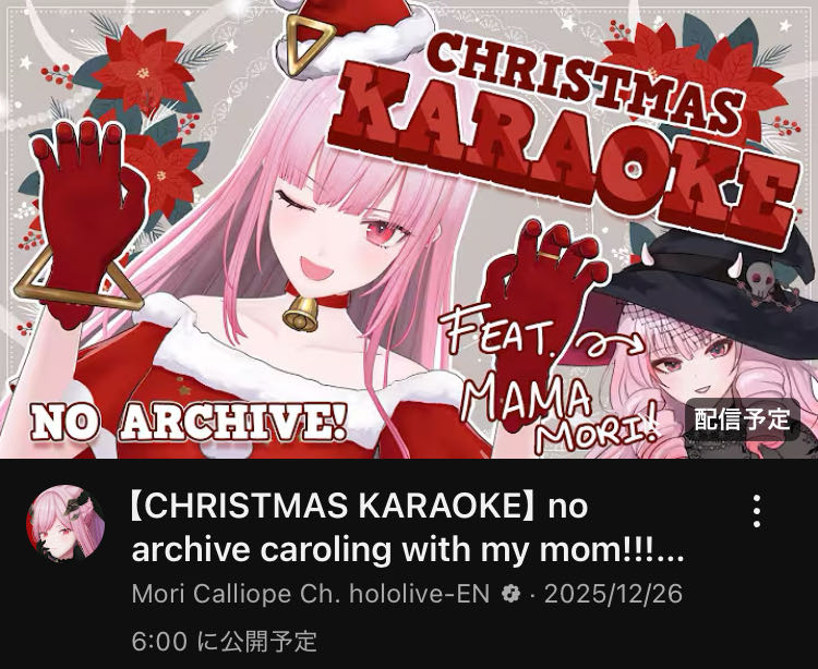 | … | 479無題Name名無し 25/12/26(金)05:53:51 IP:122.133.*(mesh.ad.jp)No.11196843+ 1766696031880.jpg-(117771 B) ママ森が参加するアンアーカイブ歌枠が始まる |