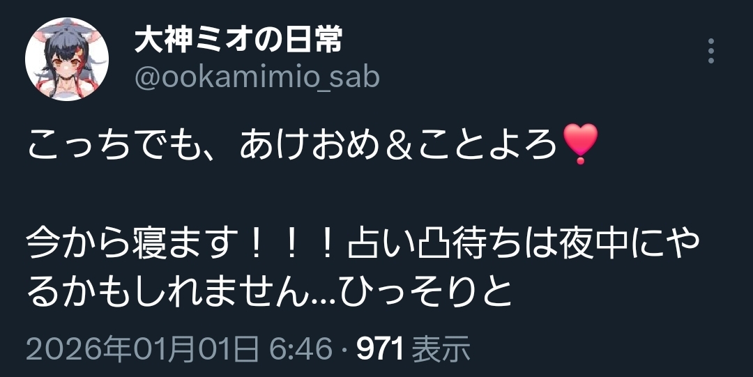 | … | 960無題Name名無し 26/01/01(木)10:31:06 IP:106.146.*(au-net.ne.jp)No.11278196+>聞いて名無し |
