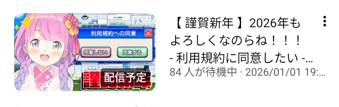 | … | 63無題Name名無し 26/01/01(木)02:39:32 IP:153.134.*(ocn.ne.jp)No.11277206+俺もう一本ってこういう配信だと思ってたんだよなぁ |