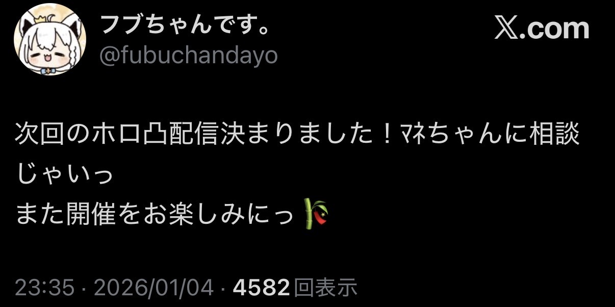 | … | 17無題Name名無し 26/01/04(日)22:50:28 IP:126.157.*(panda-world.ne.jp)No.11327420+ぺこらマミーとしゅぴしゅわを同時接種できる最高の夜だな! |