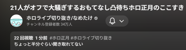| … | 938無題Name名無し 26/01/05(月)00:18:31 IP:59.132.*(au-net.ne.jp)No.11328377+あのわちゃわちゃ具合はちゃんとだれが喋ってるかわかりやすく字幕付けてくれるタイプの切り抜きチャンネル泣かせだわな |