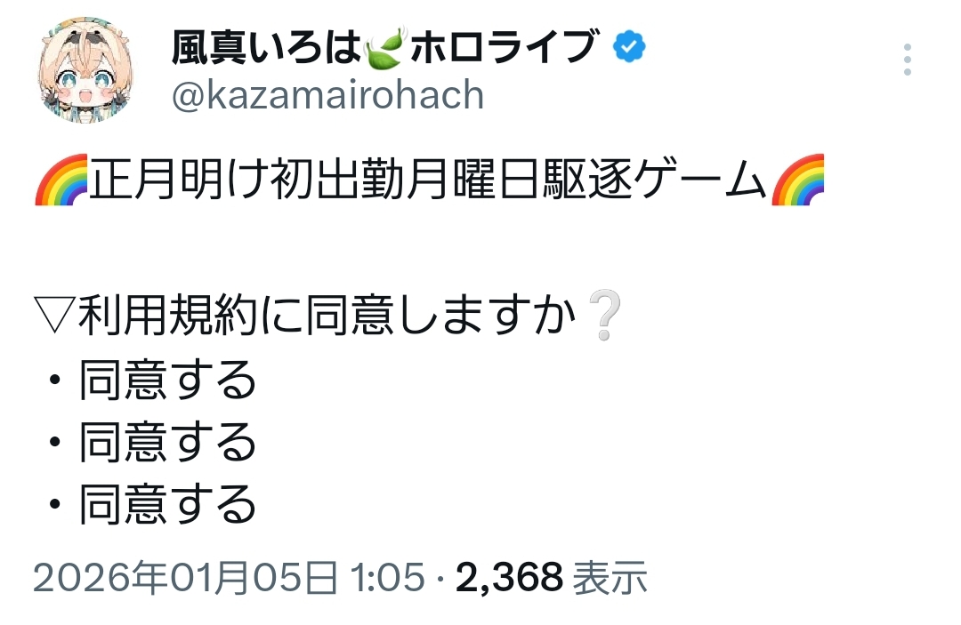 | … | 31無題Name名無し 26/01/05(月)00:38:24 IP:153.209.*(ocn.ne.jp)No.11328476+同意にはホロメンを長時間配信させる謎の力がある |