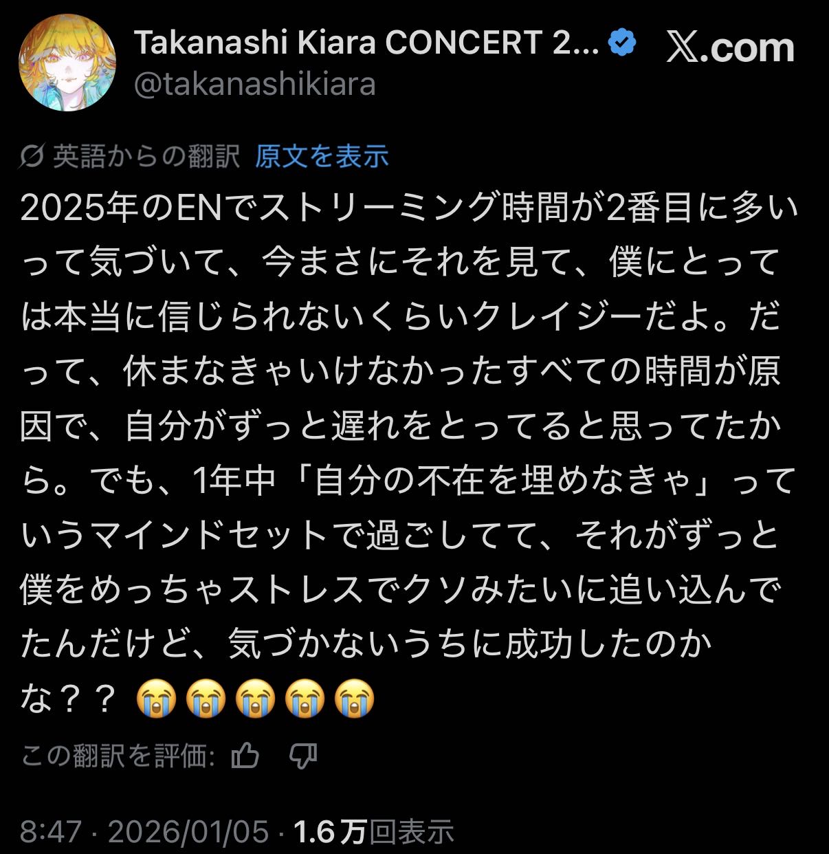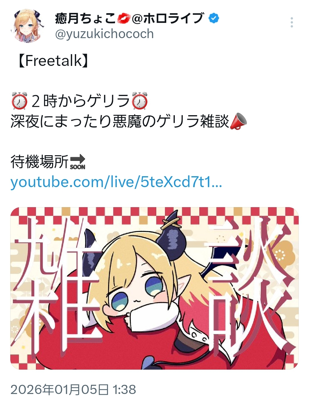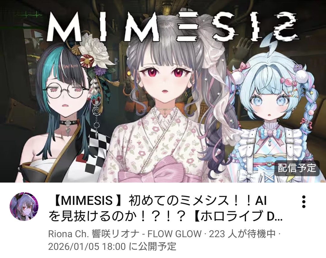 | … | 23無題Name名無し 26/01/05(月)00:37:30 IP:118.241.*(nuro.jp)No.11328468+今日から仕事なのに見たい配信が多すぎる・・・ |