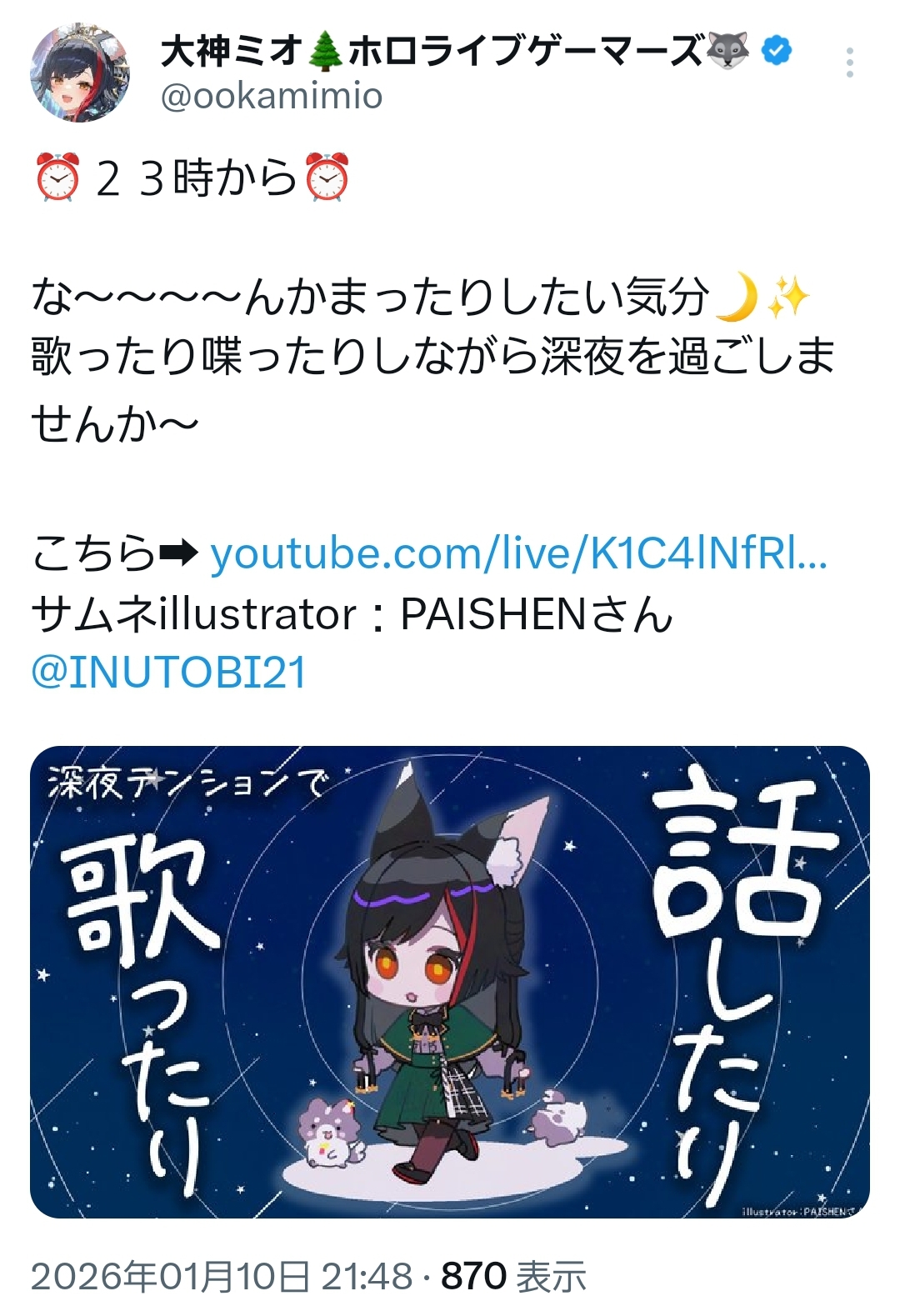 | … | 74無題Name名無し 26/01/10(土)20:49:21 IP:60.120.*(bbtec.net)No.11356902+こよりマリリシャガチ勢です |