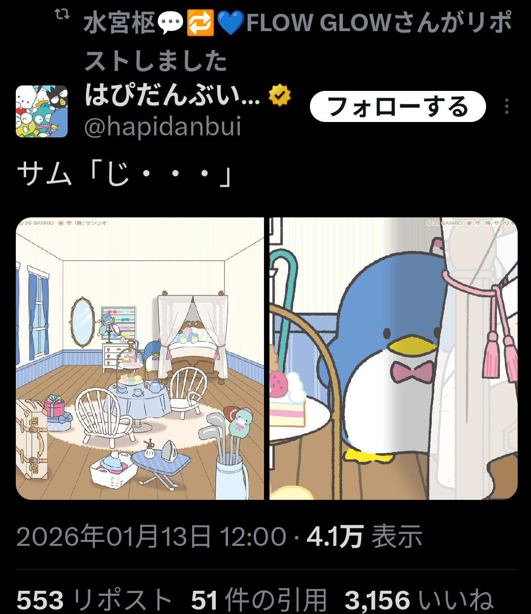 | … | 47無題Name名無し 26/01/12(月)23:54:43 IP:118.1.*(ocn.ne.jp)No.11373638+>>(๑╹ᆺ╹)公式のグッズはあとからでも買えるから!生誕と周年とライブにためておいて!! |