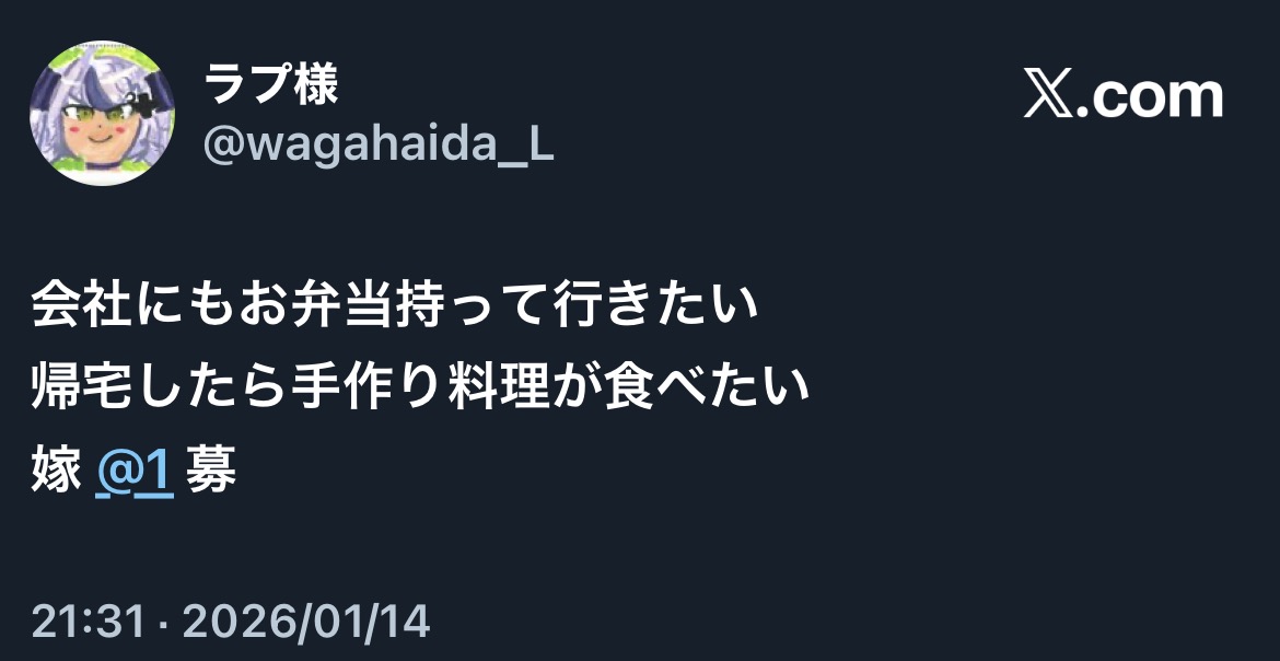 | … | 40無題Name名無し 26/01/14(水)21:30:19 IP:106.146.*(au-net.ne.jp)No.11380224+りんごジャム入りのおにぎりか |