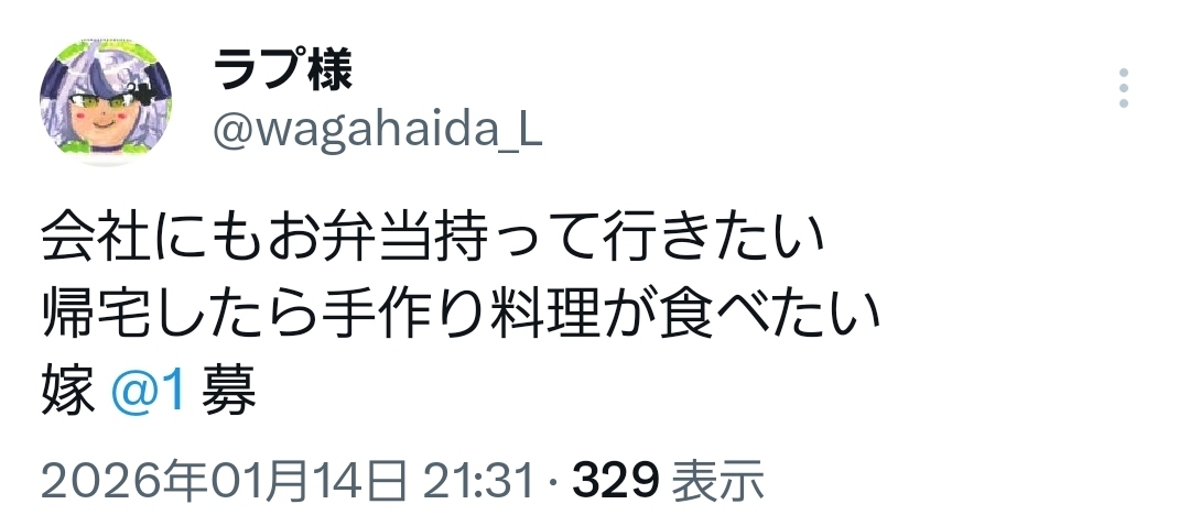 | … | 60無題Name名無し 26/01/14(水)21:32:04 IP:36.13.*(dion.ne.jp)No.11380245+大間のマグロと晴天の霹靂でアホみたいな値段のおにぎり作ろう |