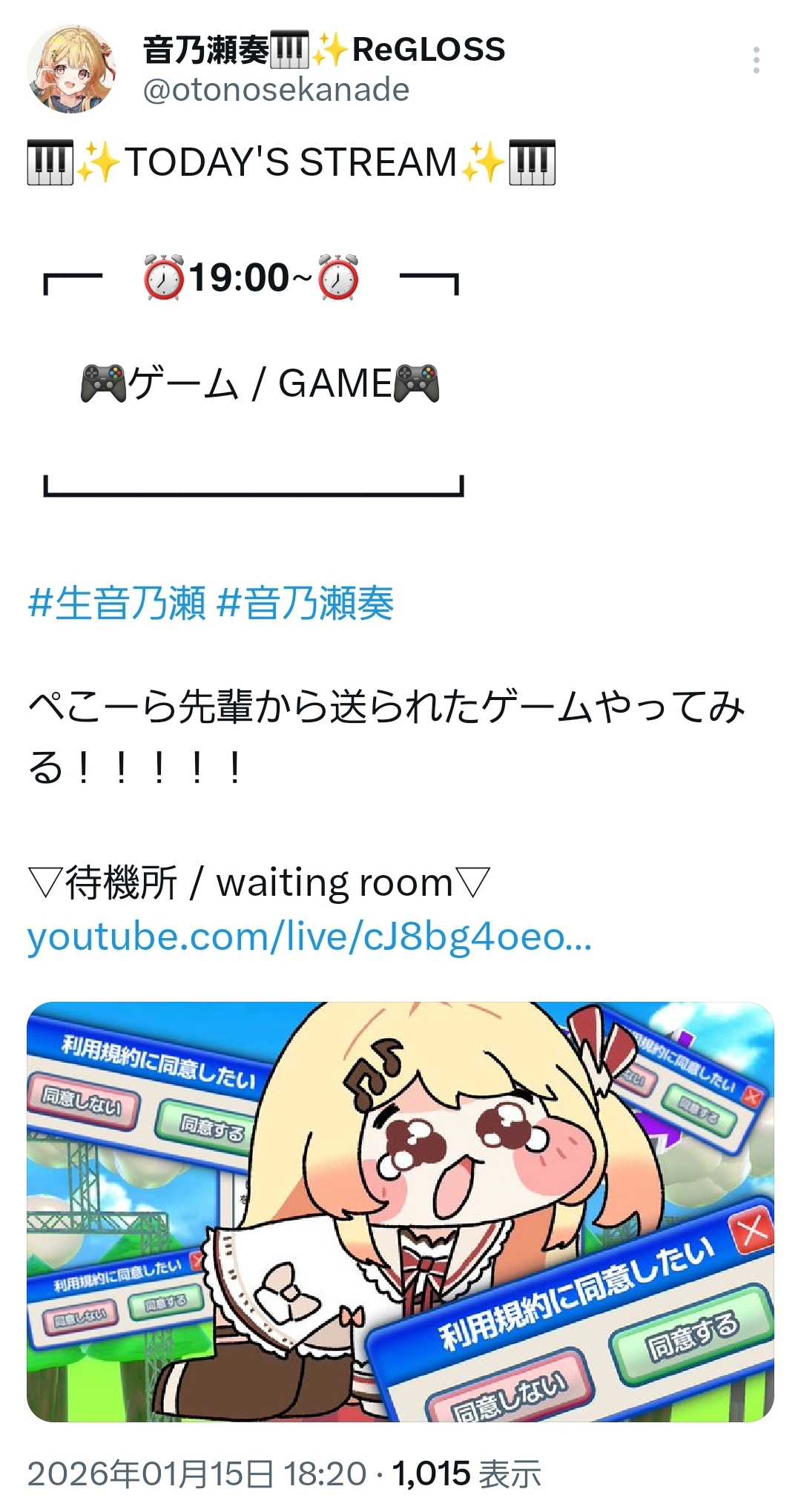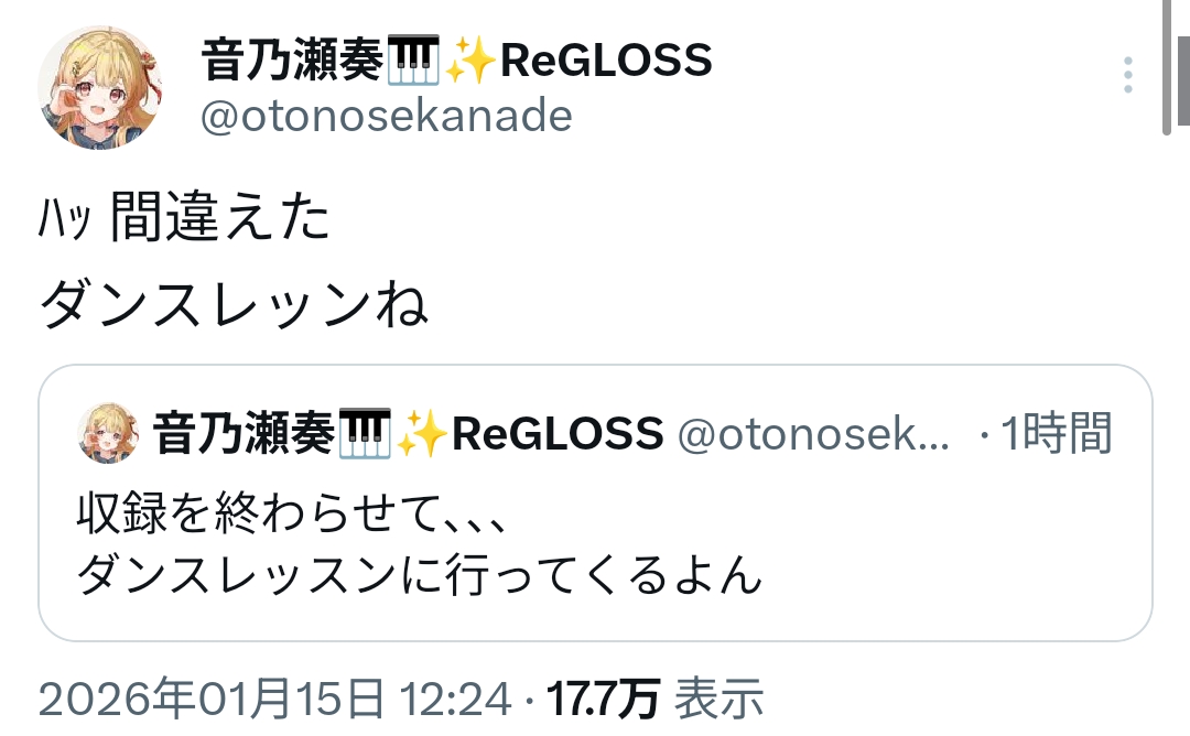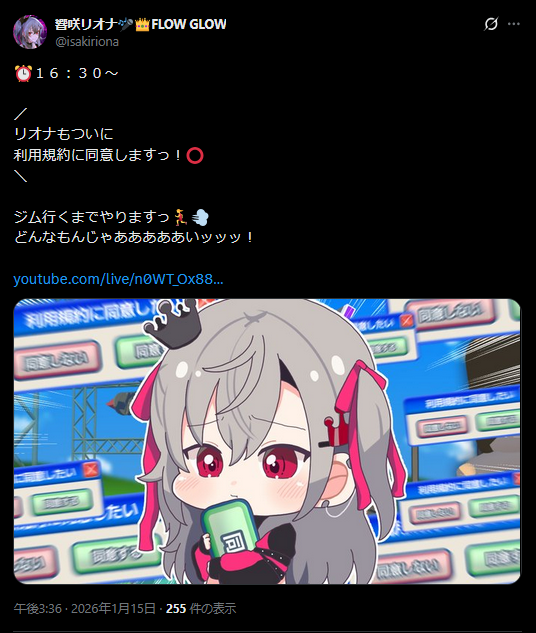 | … | 46無題Name名無し 26/01/15(木)11:37:41 IP:101.203.*(ncv.jp)No.11382341+りおーなのタイトルが水曜日だから今日は水曜日でええか |