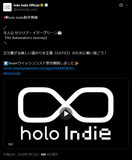 | … | 74無題Name名無し 26/01/15(木)12:22:37 IP:180.145.*(eonet.ne.jp)No.11382382+新しいホロインディの情報が出てるな |