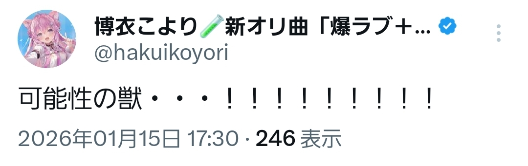 | … | 957無題Name名無し 26/01/15(木)19:46:13 IP:106.133.*(au-net.ne.jp)No.11383374+自認ヴィヴィはやばい |
