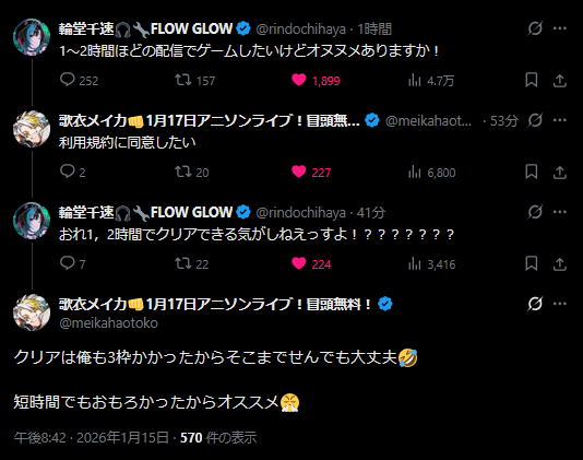 | … | 924無題Name名無し 26/01/15(木)22:26:30 IP:130.62.*(transix.jp)No.11385430そうだねx3見ながらじゃないと完全に2人で歌ってるんだよなあ |