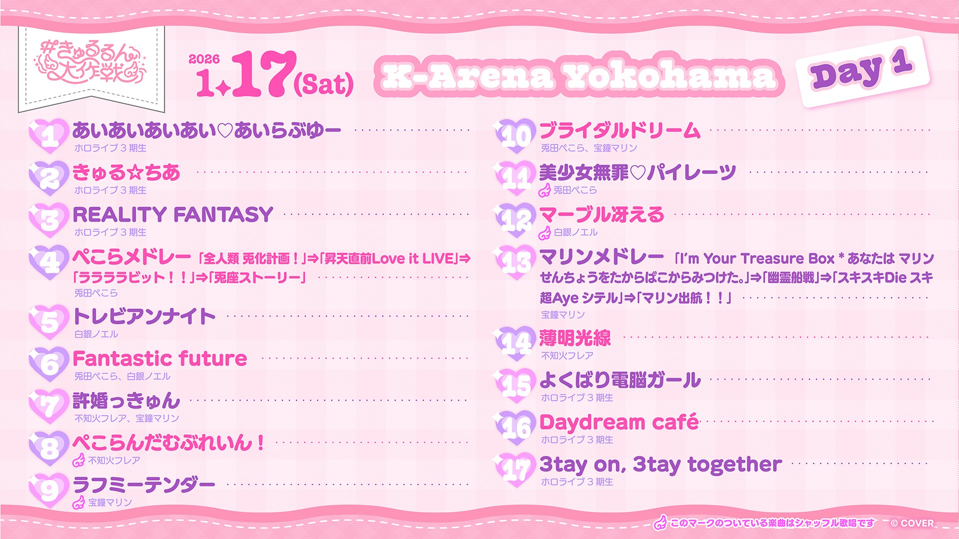 | … | 738無題Name名無し 26/01/17(土)20:05:39 IP:106.73.*(enabler.ne.jp)No.11394507そうだねx3 1768647939153.jpg-(360359 B) 本日のセトリです |