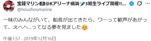 | … | 746無題Name名無し 26/01/17(土)20:16:32 IP:124.84.*(ocn.ne.jp)No.11394655そうだねx12 1768648592629.jpg-(29242 B) 2019年1stフェス前の新人だった頃の船長の夢 |