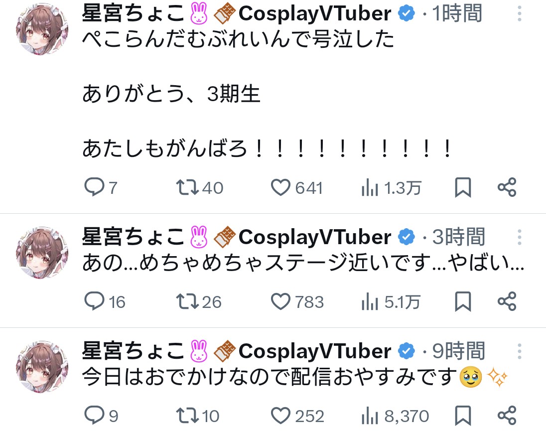 | … | 741無題Name名無し 26/01/17(土)20:06:11 IP:124.84.*(ocn.ne.jp)No.11394520そうだねx4ヴィヴィ「ぺこら先輩配信とぜんぜん違うねアイドルやった」 |