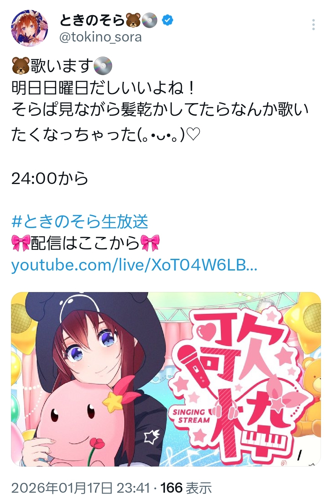 | … | 942無題Name名無し 26/01/18(日)01:08:53 IP:60.107.*(bbtec.net)No.11396849そうだねx3そらちゃんの高音はいつ聞いてもすごい |