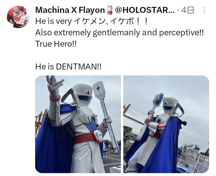 | … | 73無題Name名無し 26/01/19(月)12:37:21 IP:49.109.*(spmode.ne.jp)No.11404346そうだねx1口腔戦士デンタマンはマキナ君の最推しヒーローである |