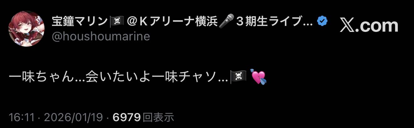 | … | 988無題Name名無し 26/01/19(月)20:02:24 IP:125.14.*(home.ne.jp)No.11405358+ライブ翌日からお仕事とはハードワークだな |