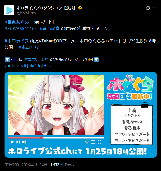 | … | 904無題Name名無し 26/01/24(土)21:02:38 IP:110.129.*(home.ne.jp)No.11426742+ホロライブを体現している風チーム |