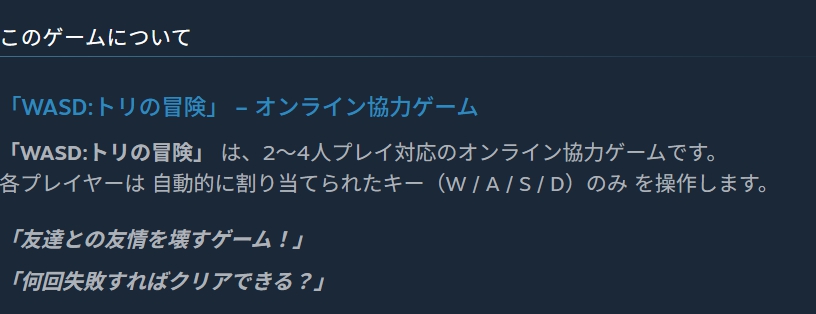 | … | 3無題Name名無し 26/01/24(土)22:10:17 IP:60.56.*(eonet.ne.jp)No.11427856+>WASD:トリの冒険は友達と一緒に楽しむ友情破壊のオンライン協力ゲームです! |