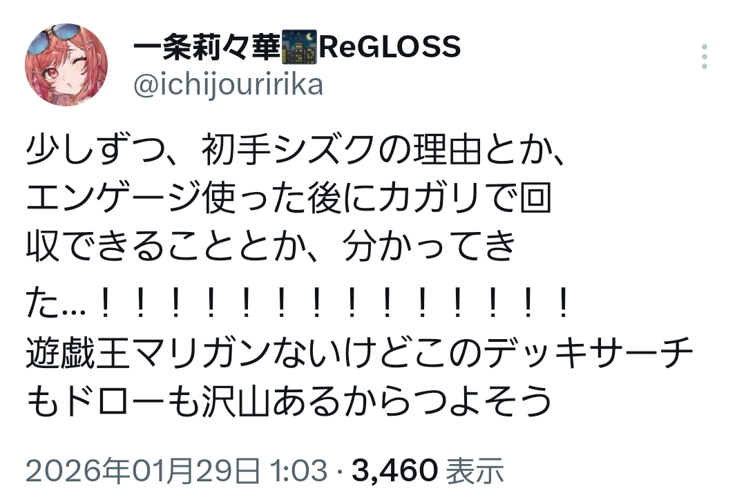 | … | 12無題Name名無し 26/01/28(水)23:27:22 IP:106.73.*(enabler.ne.jp)No.11448261そうだねx1単なるターン1とカード名ターン1とカード名デュエル1もあるのがさらなる混乱の素 |