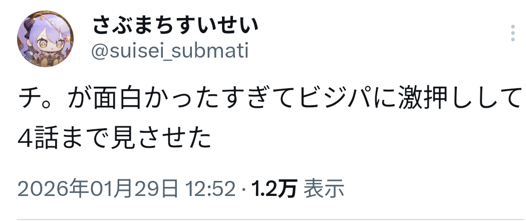 | … | 923無題Name名無し 26/01/29(木)19:38:59 IP:153.156.*(ocn.ne.jp)No.11449373そうだねx2わしは心底痺れたよ |