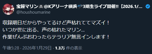 | … | 956無題Name名無し 26/01/29(木)19:45:48 IP:119.169.*(home.ne.jp)No.11449410そうだねx3ホロジュールのミオしゃの枠がサムネじゃなくて配信の画面になってて草 |