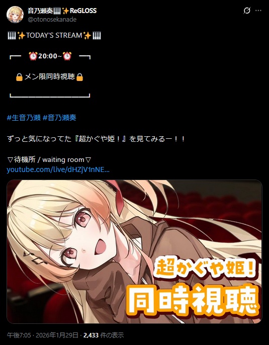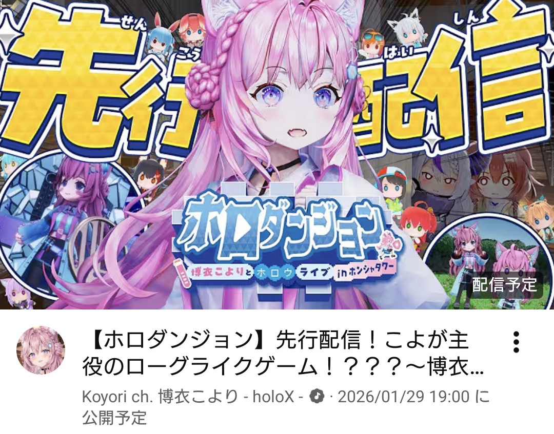 | … | 950無題Name名無し 26/01/29(木)19:45:24 IP:202.243.*(katch.ne.jp)No.11449404+ゲームの中のこよりは配信出来なくて可哀想 |