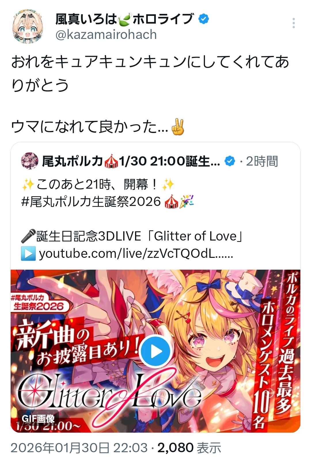 | … | 19無題Name名無し 26/01/30(金)22:06:55 IP:211.124.*(zaq.ne.jp)No.11454901そうだねx1なんというか…楽しいライブだった…本当に |