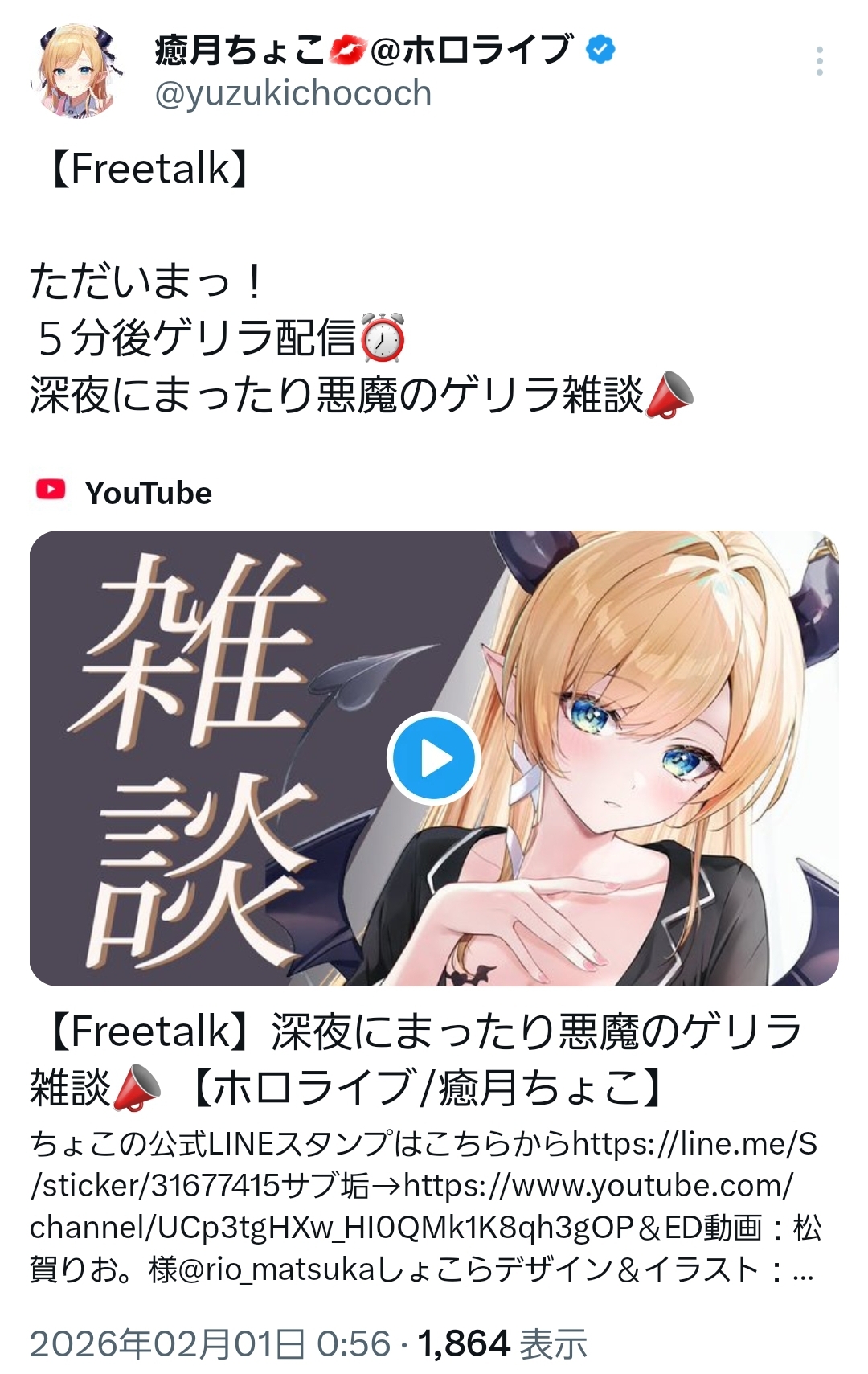 | … | 86無題Name名無し 26/02/01(日)00:06:49 IP:110.4.*(asahi-net.or.jp)No.11463342+笑いすぎておかゆの🐣がピヨピヨ鳴いとる |
