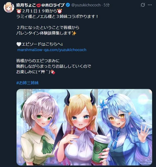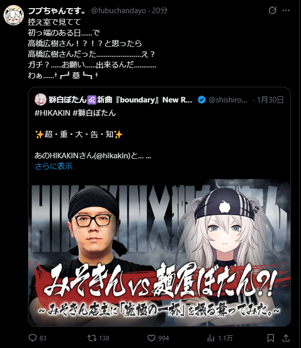| … | 946無題Name名無し 26/02/01(日)12:11:54 IP:222.9.*(commufa.jp)No.11464301+らっぷびととモモーイのやつだからお互いの好きが詰まってる |