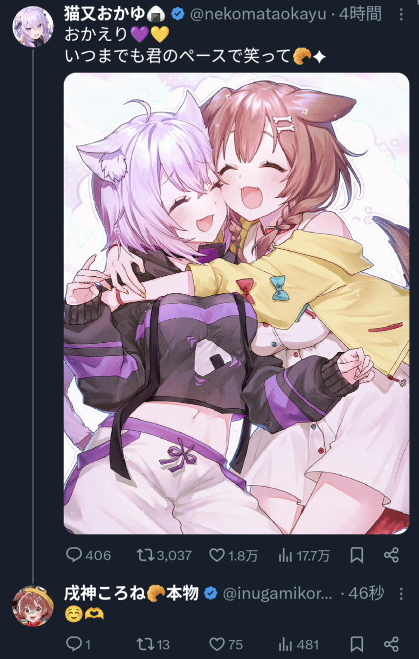 | … | 914無題Name名無し 26/02/03(火)00:29:28 IP:113.154.*(dion.ne.jp)No.11474842そうだねx1 1770046168084.jpg-(140964 B) >ホロライブの祖とホロライブの最新世代の様子がおかしい |