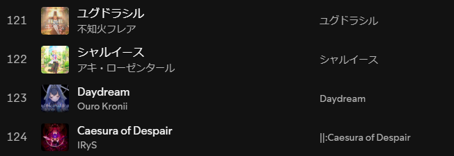 | … | 3無題Name名無し 26/02/03(火)21:18:59No.11477278そうだねx2 1770121139787.png-(39021 B) そしてついでにこれは自分で勝手に満足しているオリソンの好きなセトリ |