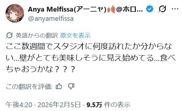 | … | 88無題Name名無し 26/02/06(金)20:24:32 IP:133.206.*(mesh.ad.jp)No.11488196+>他のホロメンが来る気配を見せなければ俺はこの料理を食い尽くすだけだ |